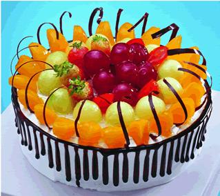 • 8寸鮮奶水果蛋糕,中心放各色時令水果,扇形巧克力插片