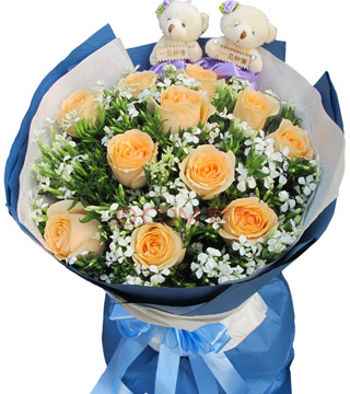 • 紅玫瑰11枝,滿天星、綠葉豐滿+8寸奶油蛋糕